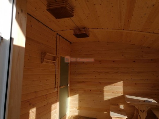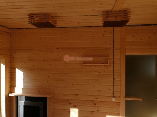 В этой серии бань делается электропроводка открытая, выключатели, светильники, розетки.