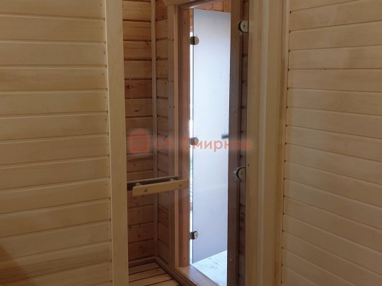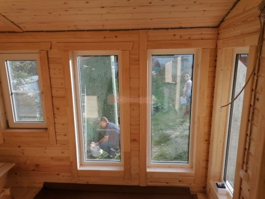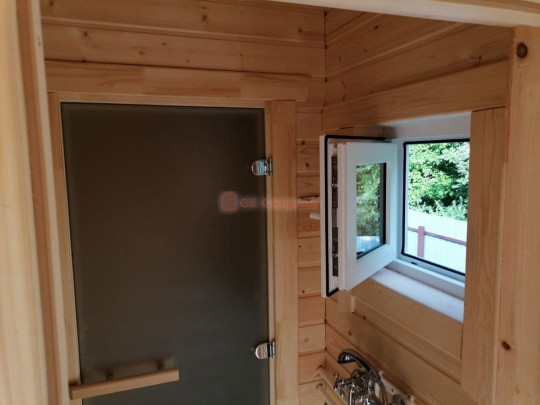 В данной бане мы используем окна вытянутой формы не открывающиеся по умолчанию, но можно за небольшую доплату сделать их открывающимися.
