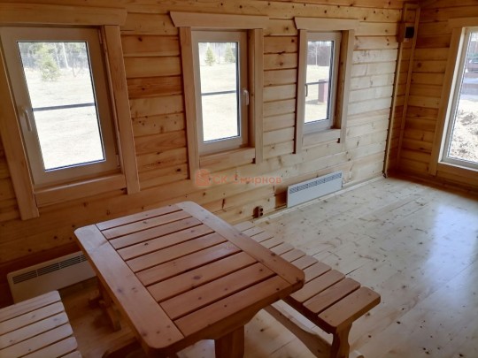 Такие детали которые не стоит выделять в отдельный пунк входят в стоимость, это: руберойд на фундамент, джут меду венцами, петли на дверях,