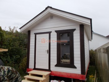 В СК Смирнов можно купить недорогую баню из сухого профилированного бруса камерной сушки под ключ с чистовой отделкой: в стоимость уже входят печь, мебель, пологи, окна, двери, покраска, внутреняя обшивка и пр. Брус нашего производства — за качество отвечаем репутацией. Фото и видеообзоры наших объектов есть в каждом проекте. Доступные цены на бани из высушенного бруса и доставка по всей Смоленской области.