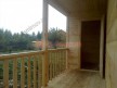 На террасе при условии что она есть делаем перила из строганной доски со всех сторон, столбы террасные также строганные, а не обрезки профилированного бруса с шипом и пазом. Домкратики на столбах для дальнейшей регулировки. Балясины будут сделаны аккуратно. Обратите внимание что в дешёвых случаях это может быть и будет просто вагонка прибирая к неотесанной доске снаружи и столбы будут не квадратные а просто профилированный брус как на видео.