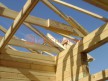 Из профилированного сухого бруса 9х14см, 14х14 см или 14х19 см. Сборка сруба в теплый угол на нагеля или гвозди 200 мм со сверлением отверстия в верхнем брусе (в зависимости от вида бруса).