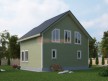 На фото представлен проект жилого дома №256 габаритами 7.5х8.5 метров и отличной планировкой общей площадью 124 квадратных метров. Можно выделить несколько особенностей проекта: эркер, туалет, ванная, санузел, панорамные окна. Особняк полутораэтажный, может использоваться как зимний, для постоянного проживания, коттедж.