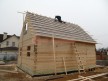 Из профилированного сухого бруса 9х14см, 14х14 см или 14х19 см. Сборка сруба в теплый угол на нагеля или гвозди 200 мм со сверлением отверстия в верхнем брусе (в зависимости от вида бруса).