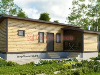 Для строительства современной бани 5.5х5 метров СК Смирнов разработал проект №200 с обустроенной парной и комнатой отдыха. По планировке общая площадь составляет 25 квадратных метров. Можно выделить несколько особенностей проекта: терраса. Мы строим бани под ключ с полной отделкой снаружи и внутри.