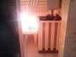 Комплектация очень хорошая, но конкретно в бане с фотографии были заказаны дополнительные опции: стеклянные межкомнатные двери, светильники в парной, панно из можжевельника, декоративная спинка полога. В душевой комнате под трапиком во всю площадь помещения установлен пластиковый поддон со сливным отверстием — можно плескаться, как душа пожелает. Сауна обшита беленькой бессучковой осиновой вагонкой, а все поверхности аккуратно зашлифованы. Печь огорожена защитным коробом. Мы тщательно следим за безопасностью бань нашего производства и до мелочей соблюдаем правила пожаробезопасности при монтаже печного оборудования.