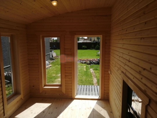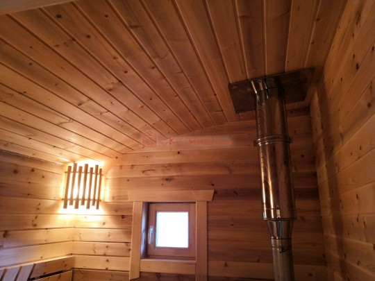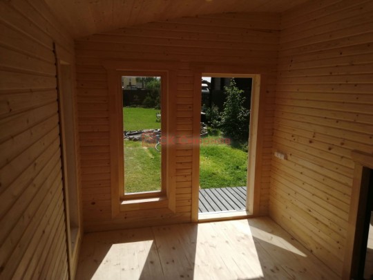В данной бане мы используем окна вытянутой формы не открывающиеся по умолчанию, но можно за небольшую доплату сделать их открывающимися.